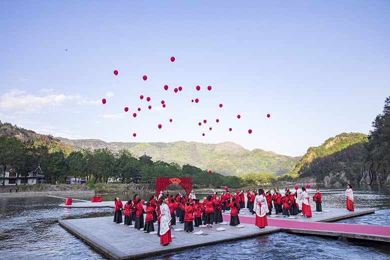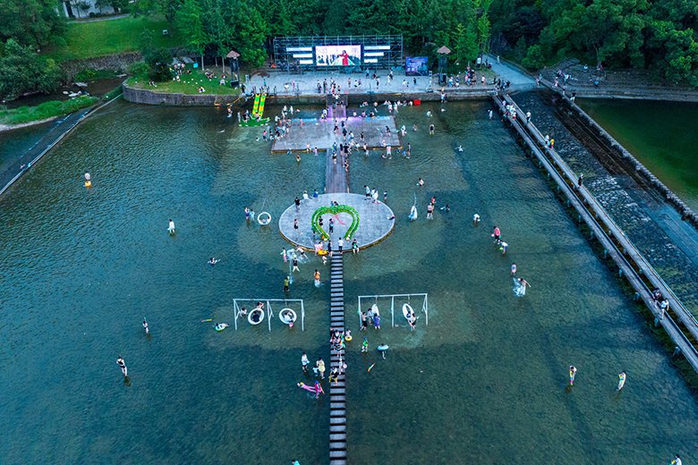 这座舞台不仅是文化传承的载体,更是全民共享的活力空间。凭借这种独特的空间特质与极具视觉张力的场景优势,近年来成了各类大型活动的首选场地:每年盛夏的泼水狂欢节在此掀起欢乐高潮,千人共舞的水幕光影秀与潮流音乐展演交相辉映;从浙江诗路IP开发推进活动暨楠溪江文化旅游节、世界青年科学家峰会这类高规格文化论坛,到第十三届温州市大众跆拳道公开赛、永嘉首届职工集体婚礼等民生类活动;从央视17套《乡村大舞台》、浙江卫视《奔跑吧》等综艺录制,到中国山水诗雅集、非遗打铁花、汉式十周岁成长礼等特色主题活动,几乎覆盖了文化展示、体育竞技、综艺录制、民俗体验等多元场景。