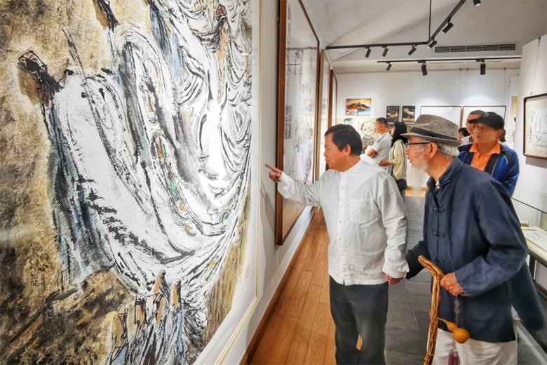 二层展馆是金松艺术工作室,系统展示金松教授及其工作室成员创作成果。金松教授系温州籍著名国画家,1984年毕业于浙江美术学院(现为中国美术学院)国画系人物班,获文学士学位。同年分配至温州师范学院美术系任教。1998年教育部华东高级师资培训中心硕士研究生结业,2003-2004年中国艺术研究院美术学博士访问学者,2005年晋升教授。2007年被杭州师范大学美术学院作为高级专业技术人才引进,任国画人物教研室主任、教授、硕士研究生导师,2022年温州大学美术与设计学院特聘教授,中国美术家协会会员,浙江省中国人物画研究会理事。作品多次在全国美展及浙江省美展中获奖,并有作品被中国美术馆、浙江美术馆、嘉兴美术馆、温州博物馆、温州美术馆、周昌谷美术馆、中国美术学院等学术机构收藏。金松教授为中共永嘉县委宣传部特聘艺术家,长期入驻永嘉书院,其艺术实践深度融入永嘉书院文化建设体系。
