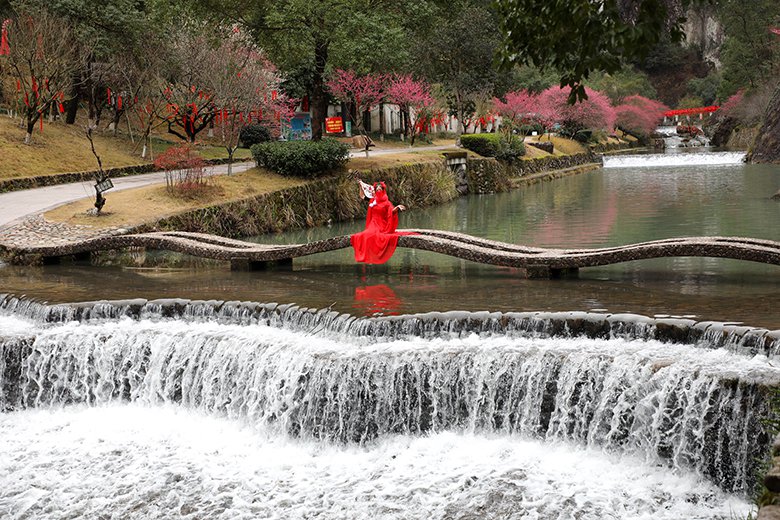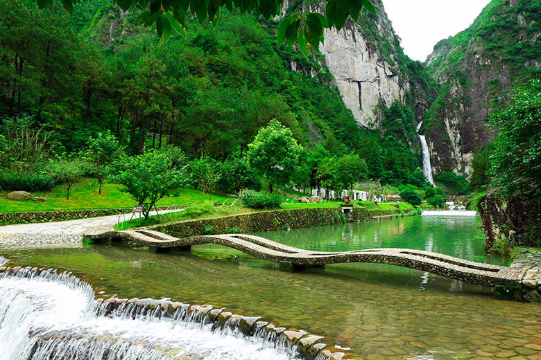 漫步桥上,一侧可仰观峭壁飞瀑的磅礴气势,另一侧则浸染于苍翠山林的静谧之中,阳光透过枝叶缝隙洒落斑驳光影,四季流转间或见繁花缀饰,或赏红叶翩跹。整座桥以“刚柔并济”的姿态串联起山水画卷,既承载着行走的趣味,又成为摄影爱好者捕捉自然光影的绝佳取景地,完美诠释了永嘉山水“可行可望可游”的东方美学意境。