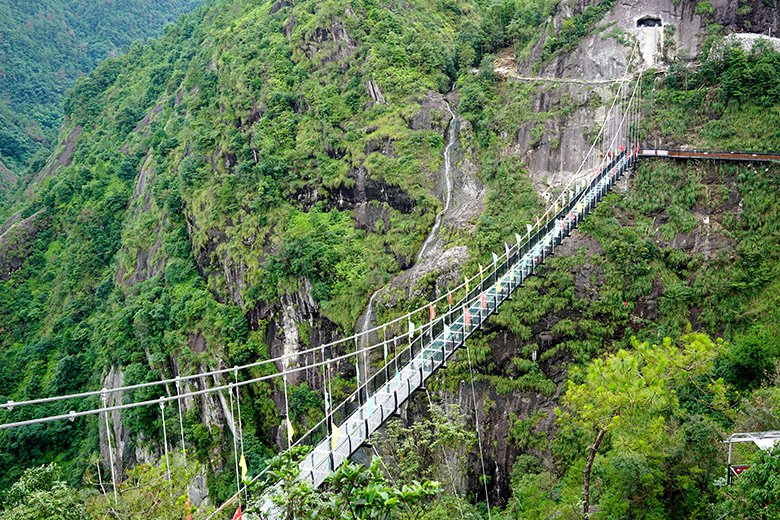 ■天空云廊如A字型银梭刺破云层,68米悬挑的玻璃观景台,以99.9%透光率将云海、峰林、飞瀑尽收眼底,恍若漫步云端仙境。
