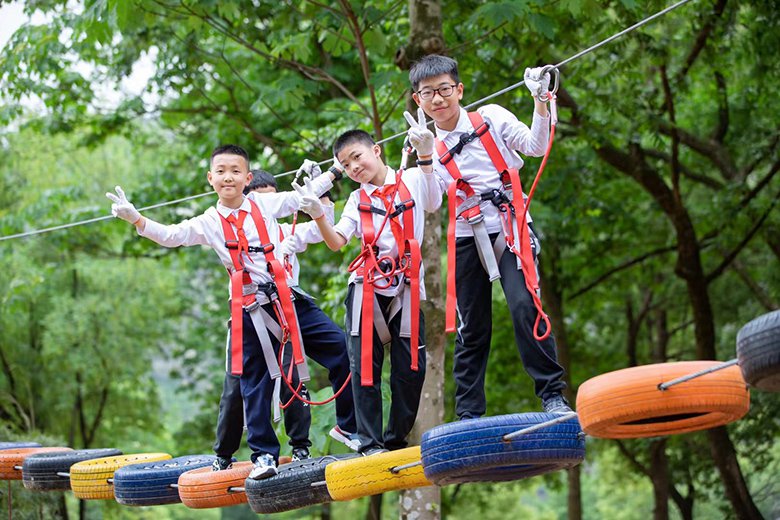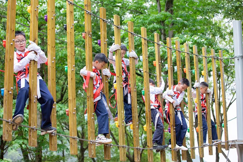 踏上第一关“交替前进”,需手脚并用跨越原木障碍,瞬间唤醒身体协调性;转战“绳网桥”时,蛛网般的绳索在头顶摇晃,每一步都考验平衡力;行至“泸定桥”仿制品,15米长的木板悬空而立,俯身抓索方能破浪前行。最受欢迎的是“绝处逢生”高空滑索,从树冠顶端俯冲而下,3秒疾驰间,恐惧化作肾上腺素飙升的快感。项目全程配备专业护具与教练指导,安全系数拉满。亲子家庭可选择低难度线路,在“轮胎桥”与“秋千桥”的嬉闹中增进默契;冒险爱好者则可挑战全线路,用征服“一线天”窄道、“晃板桥”摇摆的姿态,赢取专属“勇者勋章”。