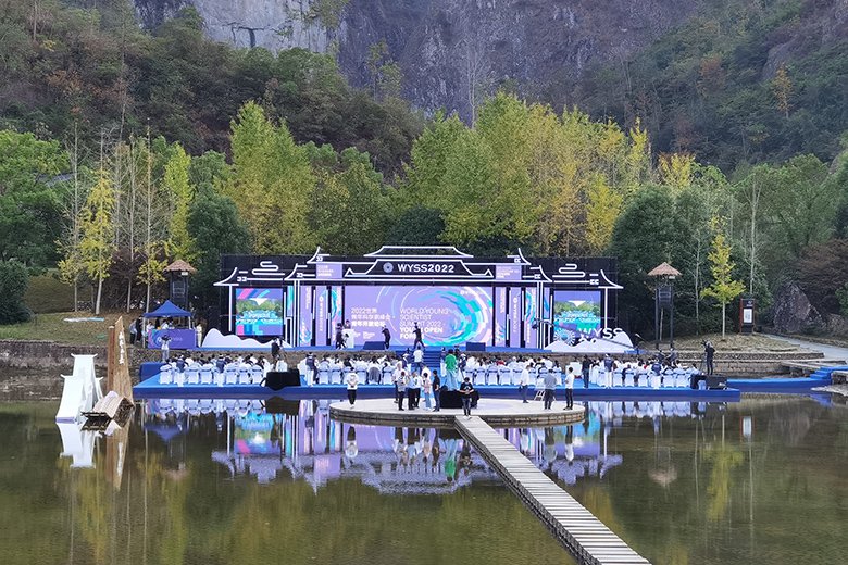 这座舞台不仅是文化传承的载体,更是全民共享的活力空间。凭借这种独特的空间特质与极具视觉张力的场景优势,近年来成了各类大型活动的首选场地:每年盛夏的泼水狂欢节在此掀起欢乐高潮,千人共舞的水幕光影秀与潮流音乐展演交相辉映;从浙江诗路IP开发推进活动暨楠溪江文化旅游节、世界青年科学家峰会这类高规格文化论坛,到第十三届温州市大众跆拳道公开赛、永嘉首届职工集体婚礼等民生类活动;从央视17套《乡村大舞台》、浙江卫视《奔跑吧》等综艺录制,到中国山水诗雅集、非遗打铁花、汉式十周岁成长礼等特色主题活动,几乎覆盖了文化展示、体育竞技、综艺录制、民俗体验等多元场景。