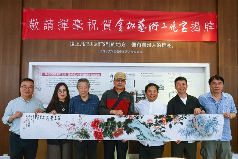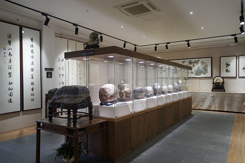 翰墨斋融楠溪山水灵韵与千年文脉于一堂,以亿年天然卵石为纸,名家翰墨为墨,演绎"天工造物,人文养心"的哲思。林林先生的行草作品以自然和谐的笔触,融诗人的洒脱与智者的超然于一体,再现中日书法交流的沧海桑田;陈中浙先生的对联以永嘉学派哲思为魂,笔力遒劲如楠溪古堰,对仗间尽显山水禅机。林剑丹先生的行书承袭温州"瓯江谣"笔韵,与陈振濂、刘艺等大家的墨宝共构"缺陷即圆满"的美学意境,在山水灵韵中对话千年文脉。七亿年瓯江石英岩的肌理与名家笔触交织,于方寸间见天地——赏石观字时,可见滩林烟雨化作宣纸留白,石桅朝圣凝成笔锋转折,这便是楠溪江独有的"山水入墨,文脉生辉"。